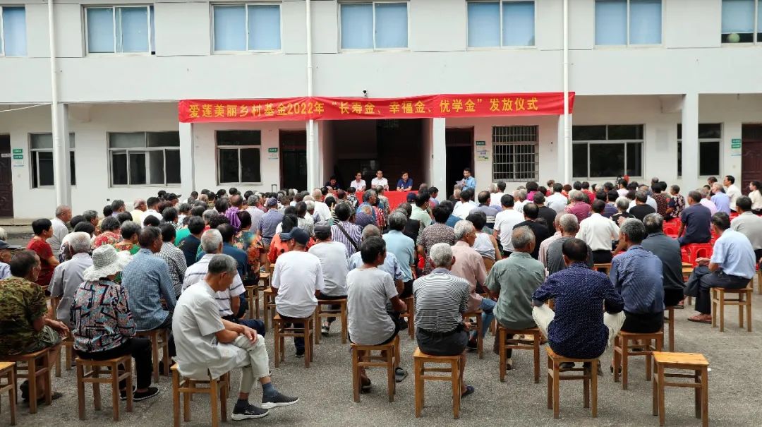 盛世华诞,,,,,,举国同庆,,,,,,欢度重阳。。。。。。10月4日,,,,,,爱莲漂亮墟落基金会2022年“庆重阳•贺长寿•送幸福”三金发放仪式在新昌县渡皇山村举行。。。。。。县民政局党组书记、局长吕江,,,,,,羽林街道党工委副书记、主任石磊,,,,,,爱莲漂亮墟落基金会相关向导出席仪式。。。。。。