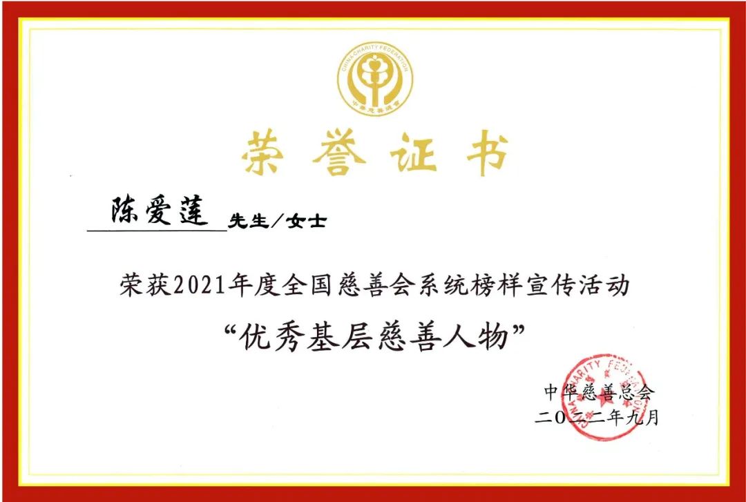 爱莲漂亮墟落基金会2018年获评AAAA级中国社会组织,,,,,,2021年获评“我和我的祖国”公益践行奖;;;;;提倡人陈爱莲主席获评2021年度天下慈善会系统模范宣传运动“慈善人物奖”。。。。。。后续,,,,,,爱莲漂亮墟落基金将一如既往地致力于“增进农村生长”的初心使命,,,,,,为推动墟落振兴、助力配合富足贡献一份实力。。。。。。